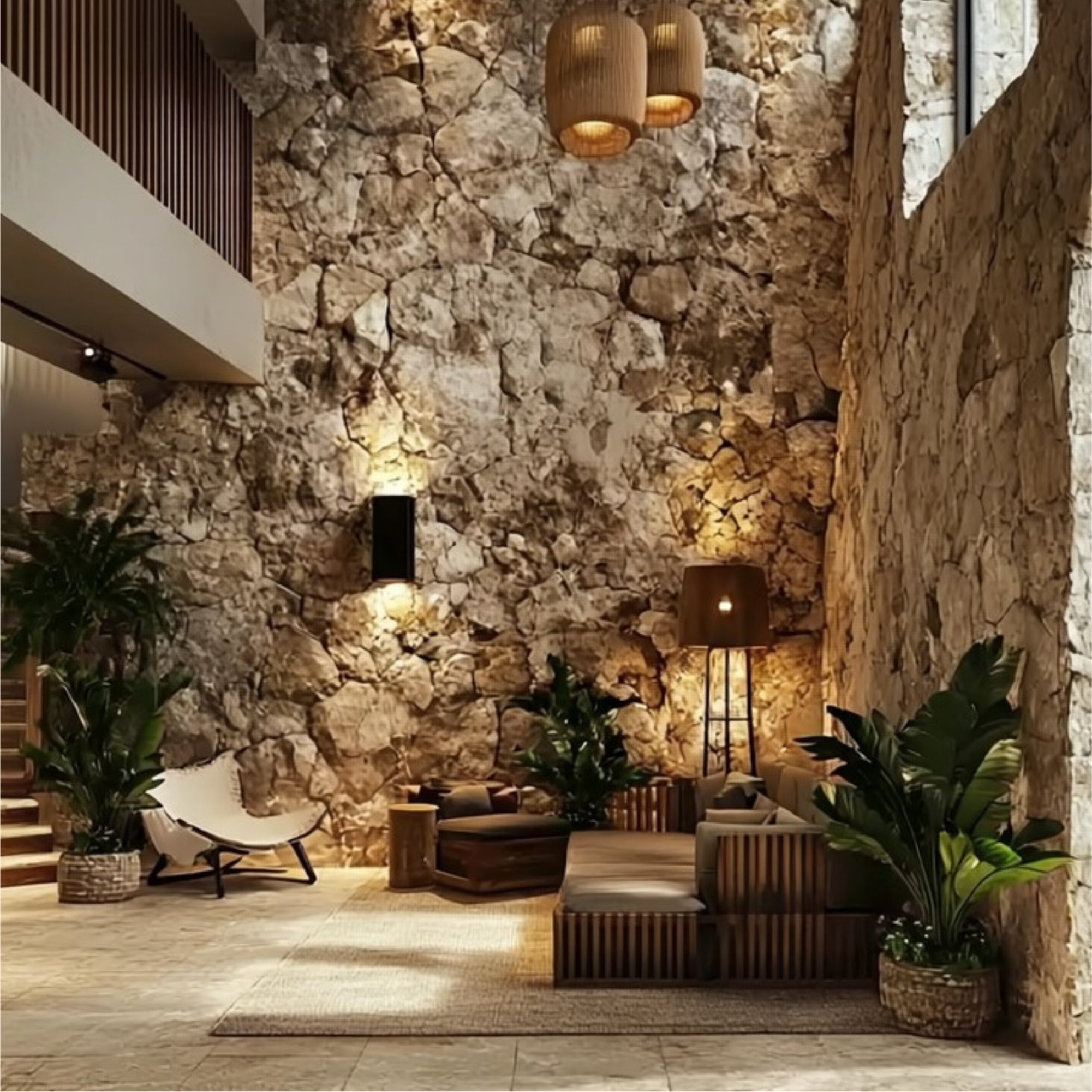 Contemporary stone backdrop for elegant home design. Perfect balance of texture and light.