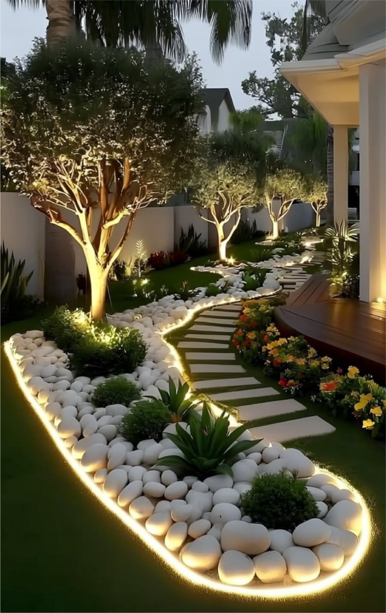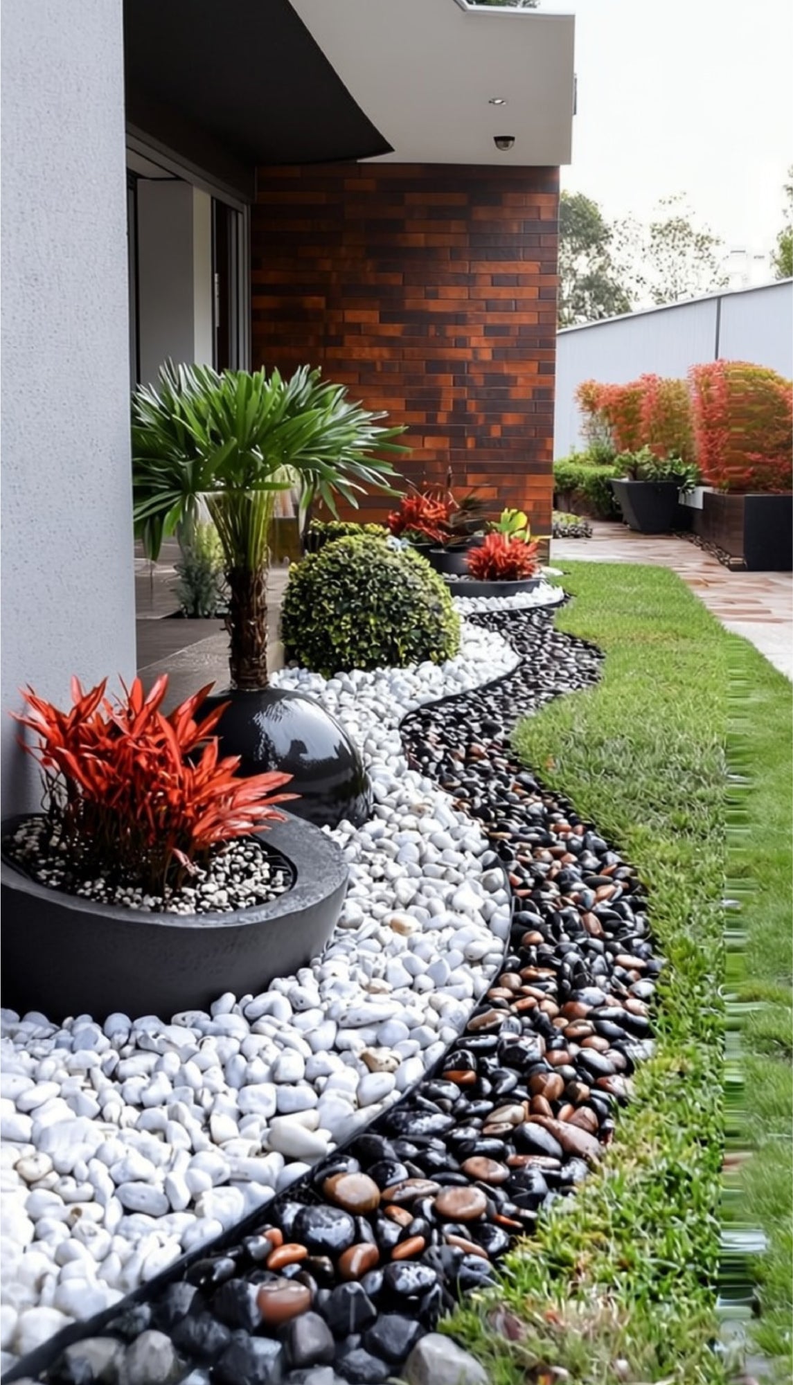 Contemporary garden design with river rock and clean lines. Minimalist elegance for modern homes.