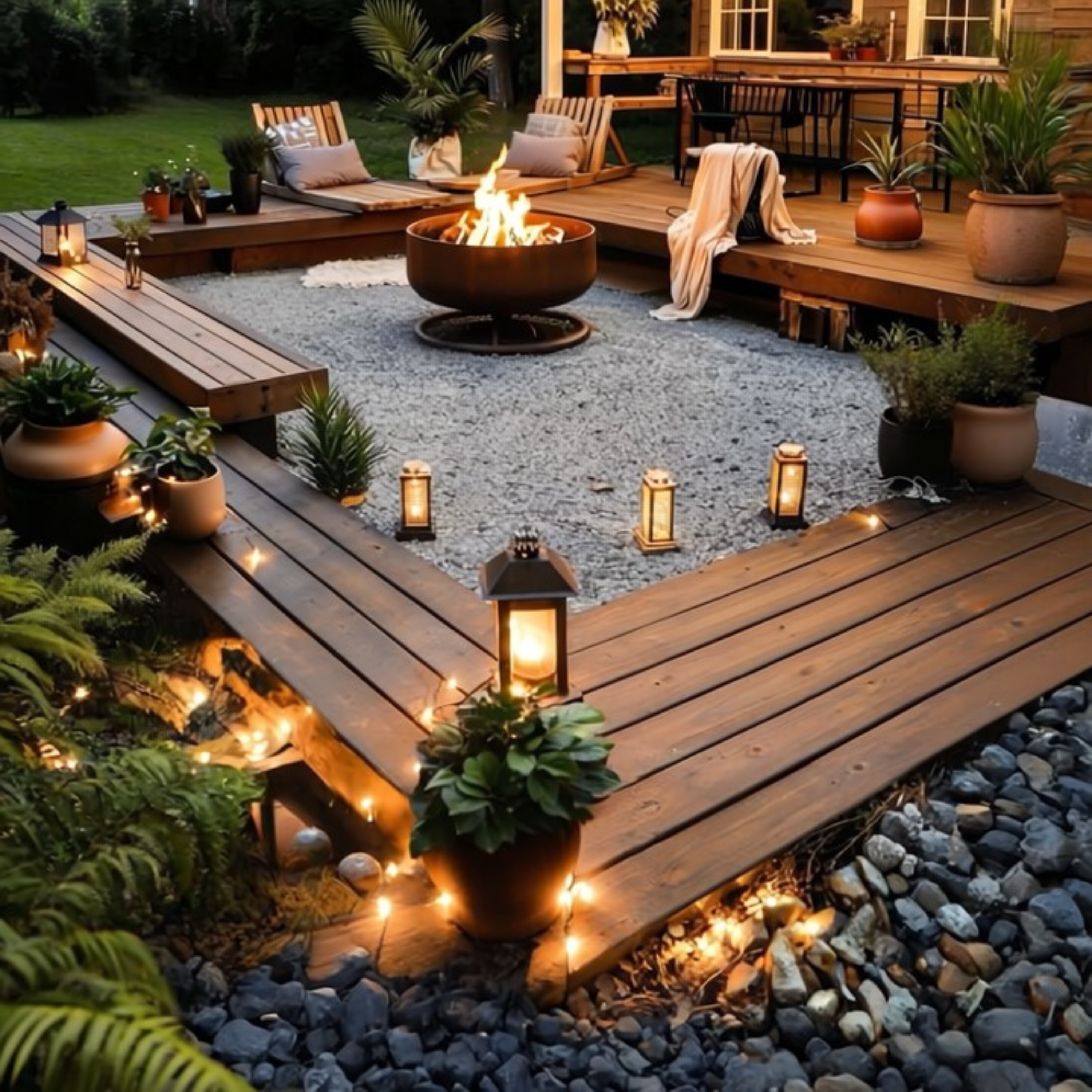 Outdoor fire pit area featuring decorative stones. Warm, inviting, and ideal for entertaining.