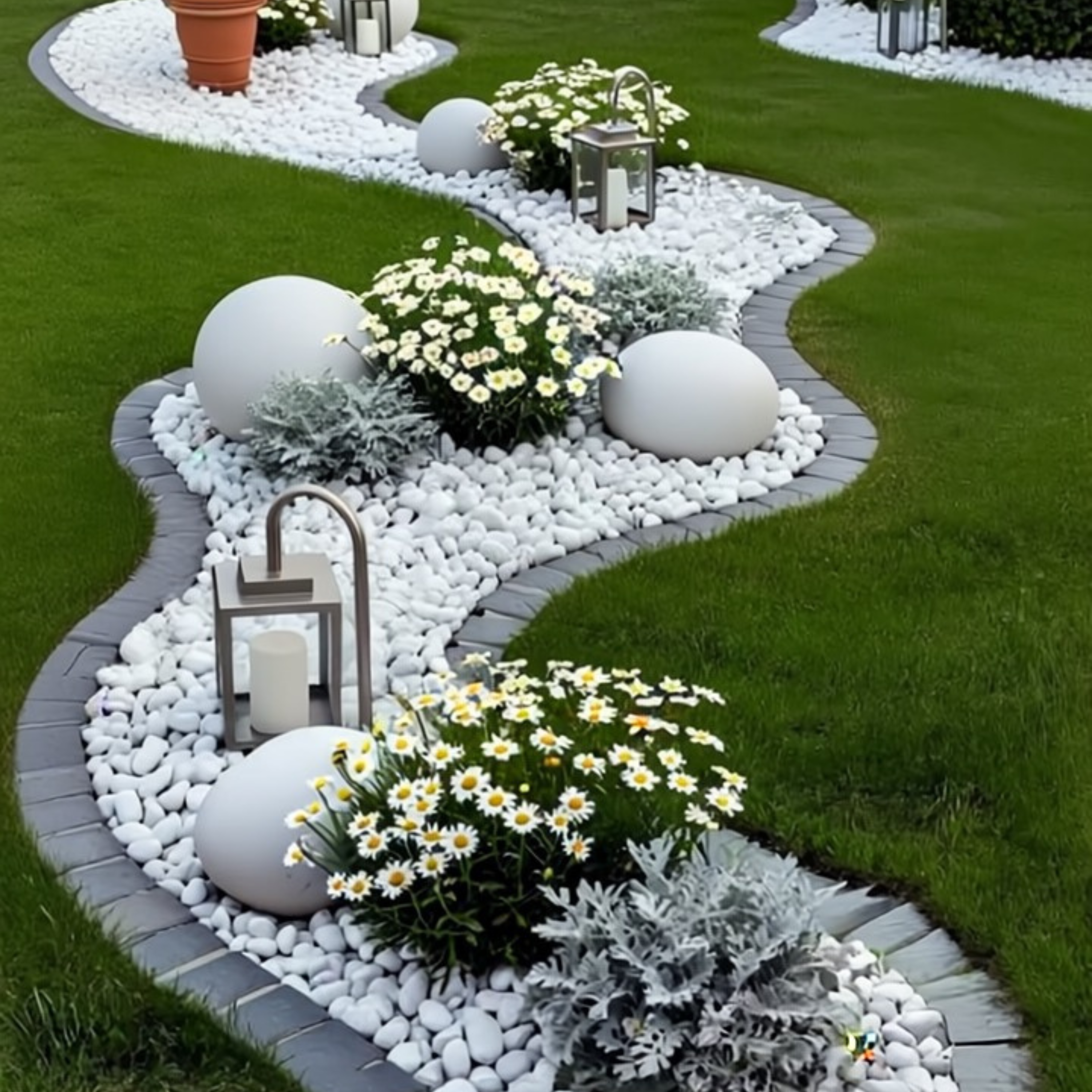 Clean, elegant white pebbles ideal for modern landscaping.