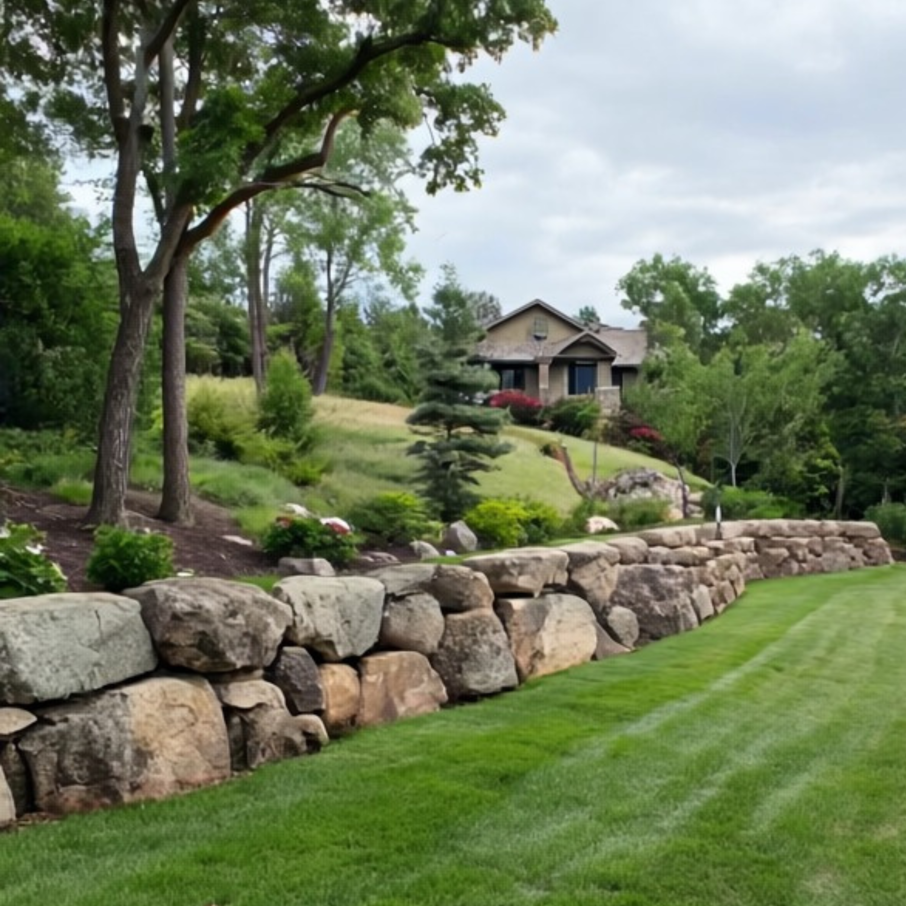 Rounded rustic stones ideal for garden retaining walls.