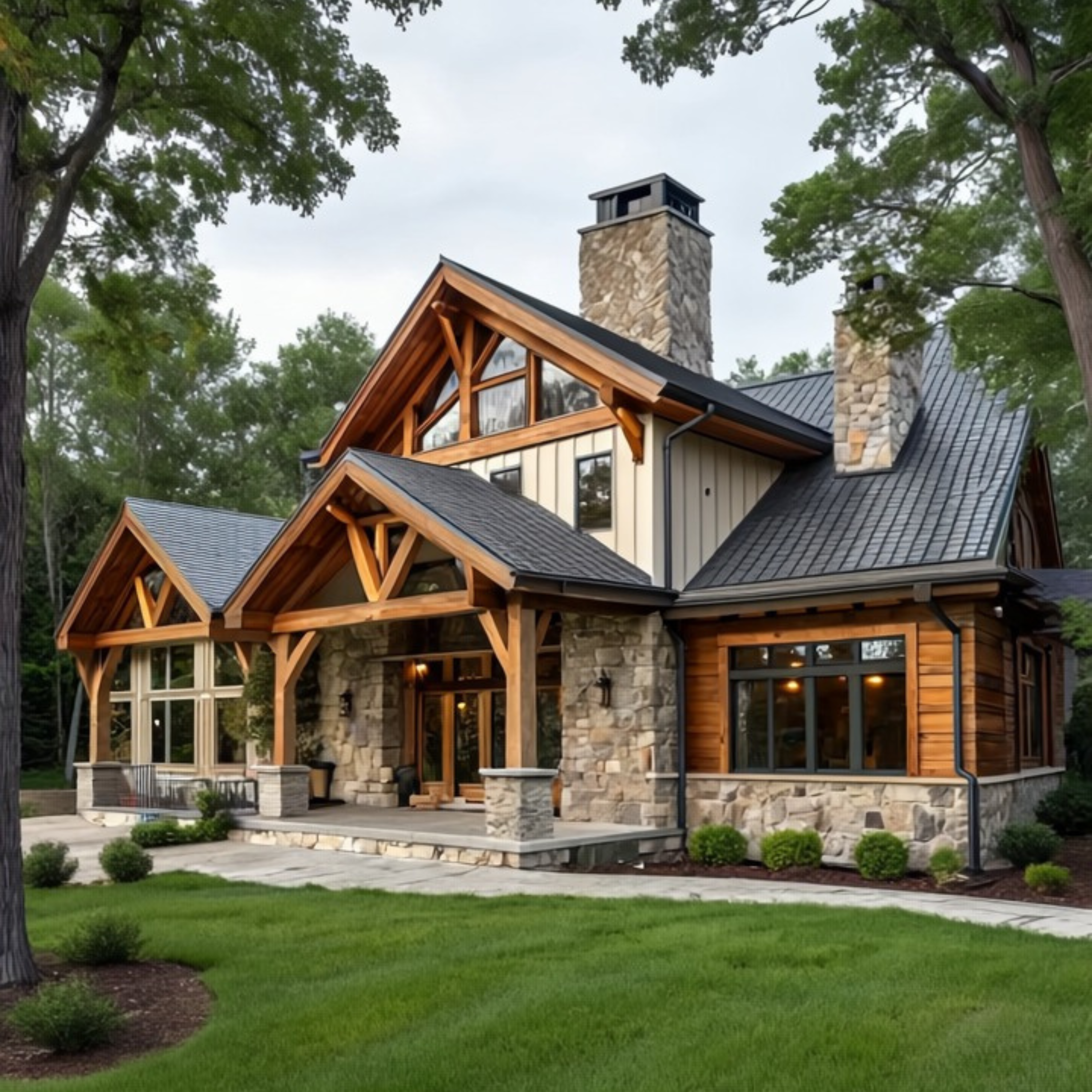 Natural gray-silver tones for stairs, walls, and strong architectural elements.